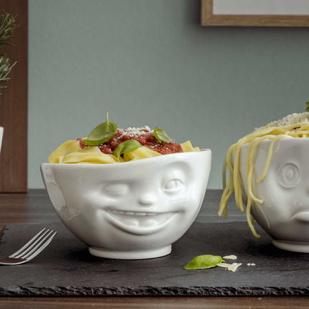 وجه مبهج آخر في مجموعة الوعاء بسعة 500 مل يجلب البهجة لطاولتك المفروشة. الضحك القلبية وغمزه الخادع هو حقًا جزء منه! تحصل الموسلي والحساء والسلطات وجميع أنواع الأطباق الأخرى على جزء إضافي من التوابل.