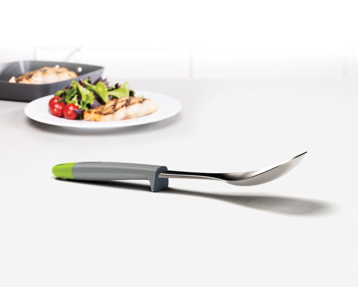 تعتبر هذه الملعقة الصلبة المصنوعة من الستانلس المقاوم للصدأ مثالية لمجموعة من مهام الطهي وتحتوي على مسند أداة مدمج يمنع رأسها من لمس السطح الذي توضع عليه