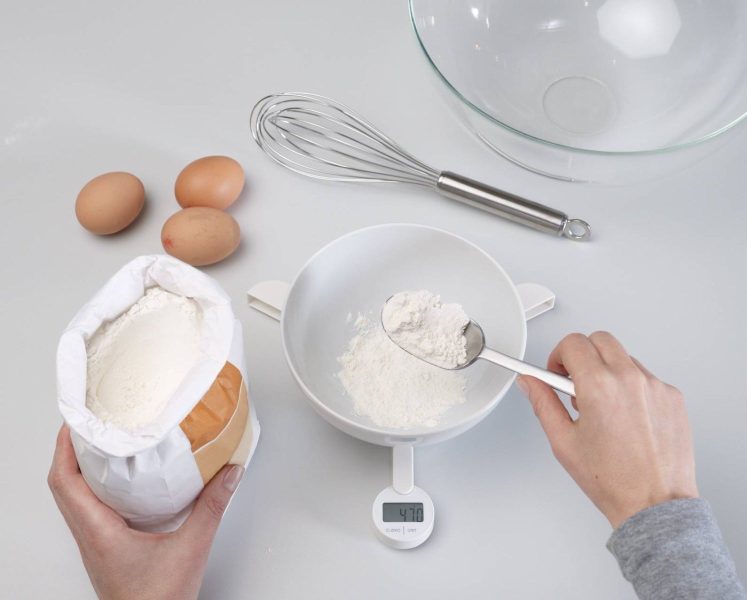 - تتيح وظيفة الإضافة والوزن المريحة قياس مكونات متعددة في نفس الوعاء أثناء تحضير الوصفة
