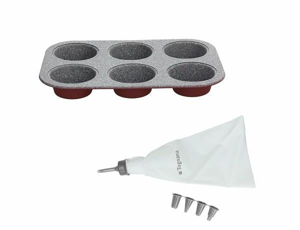 6 Cups Muffin Mold + Pastry Bag with Nozzles- Tognana